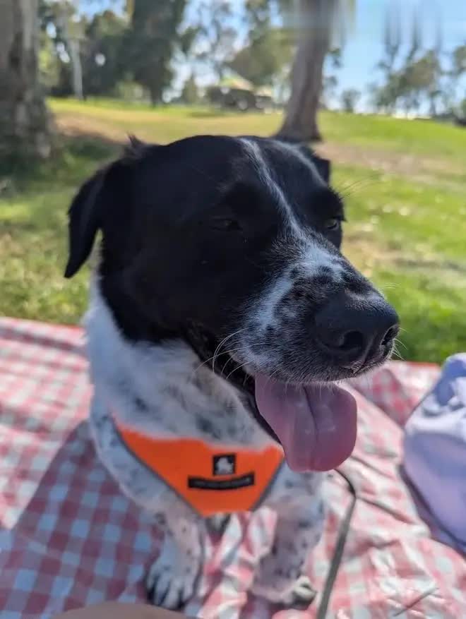 2025年秋天,一位曾在北京照看它、又正值在洛杉矶中转过它的志愿者,在Shadow被领养近一年后初次再见。