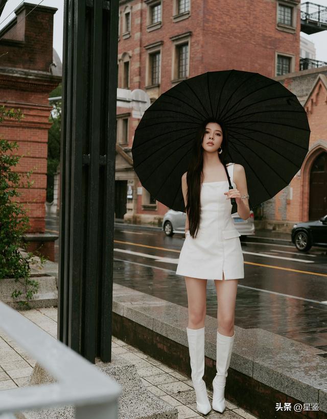 下装搭配的白色尖头长靴更是点睛之笔,和裙装同色蔓延了腿部线条,让所有东谈主看起来挺拔又修长,尖头策画还能修饰脚型,显得脚更纤细。配饰上只作念了减法,一双金属感耳环+精良臂环,莫得过剩的项链或手链,既呼应了举座的清凉感,又不会抢了服装的风头,哪怕撑一把黑伞作念谈具,短长撞色也让画面更有故事感。