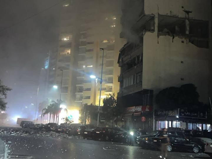 △遇袭后的贝鲁特市中心一处住宅公寓楼
