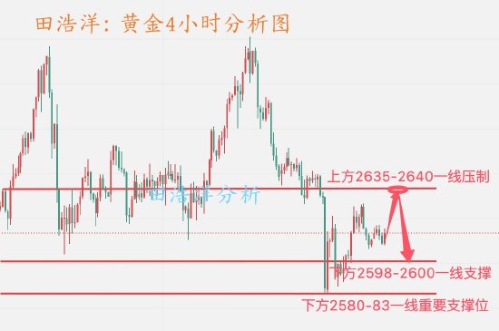 从4小时代析来看,下方短期支援存眷2600整数关隘,日内回踩下探企稳此位置可先多再看反弹回升,上方短线压力存眷2635-2640隔邻,全体依托此区间保抓高空参与主基调不变,中间位置一律多看少动严慎追单,耐烦恭候要津点位进场。具体操作战略我会在盘中辅导,实时存眷。